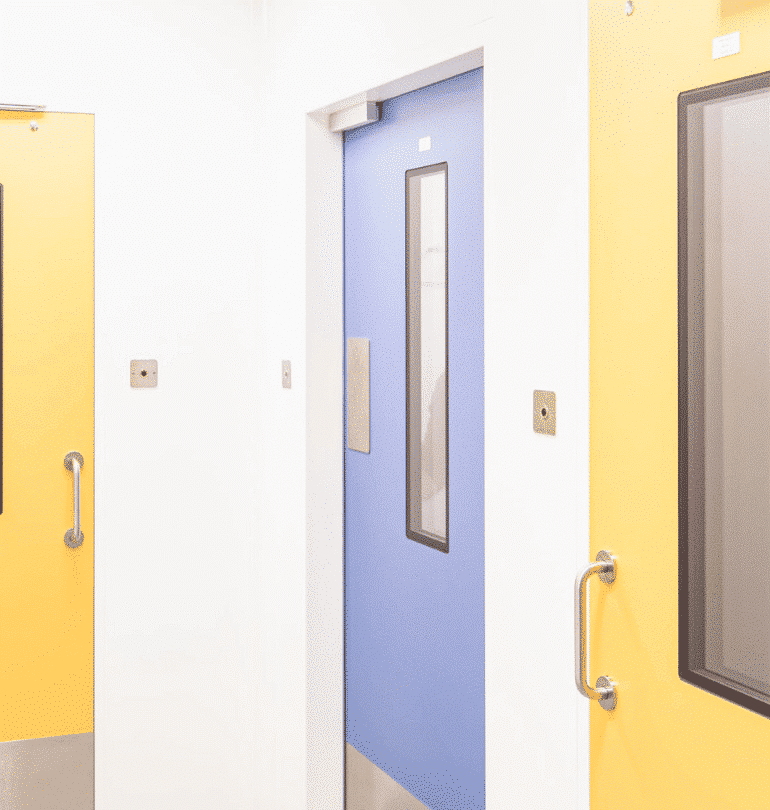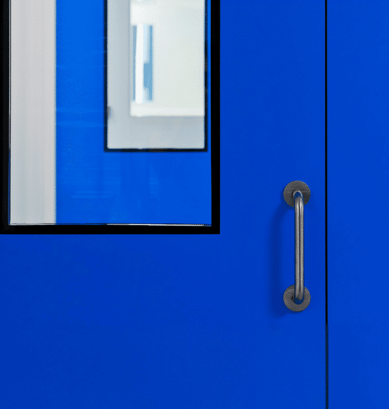 Anocleanrooms & Labs Menteşeli Kapı Sistemleri, temiz oda ve laboratuvarlar gibi steril ortamlar için özel olarak tasarlanmış yüksek hijyen standartlarına sahip kapı çözümleridir.
